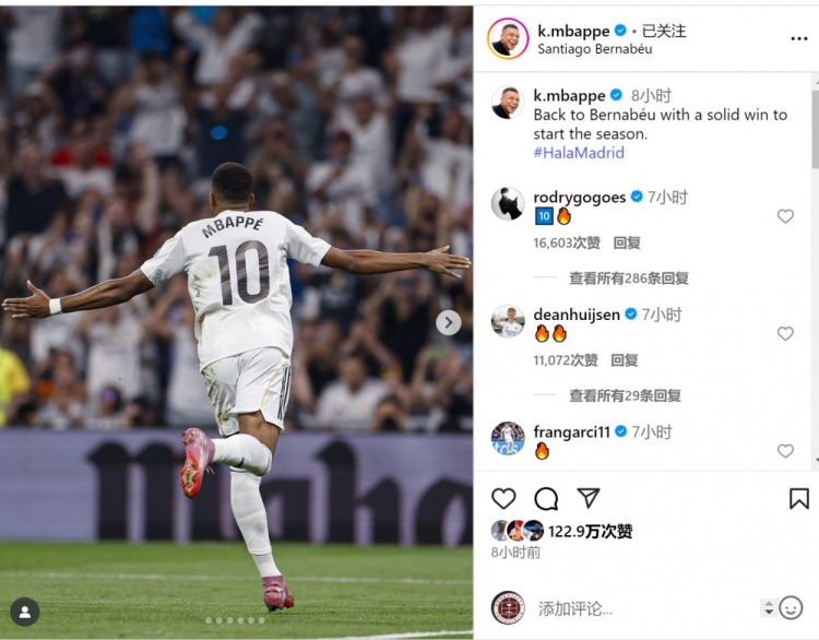 08月 22 2025 0 星空体育首页登录-点射破门!姆巴佩社媒:重返伯纳乌,以胜利开启新赛季 xiaoqiao 2025-08-22 法甲 49 8月20日讯 西甲首轮比赛,姆巴佩造点并主罚命中,帮助皇马主场1-0击败奥萨苏纳。姆巴佩社媒晒出庆祝进球的照片,并配文:“重返伯纳乌,以一场扎实的胜利开启新赛季。”