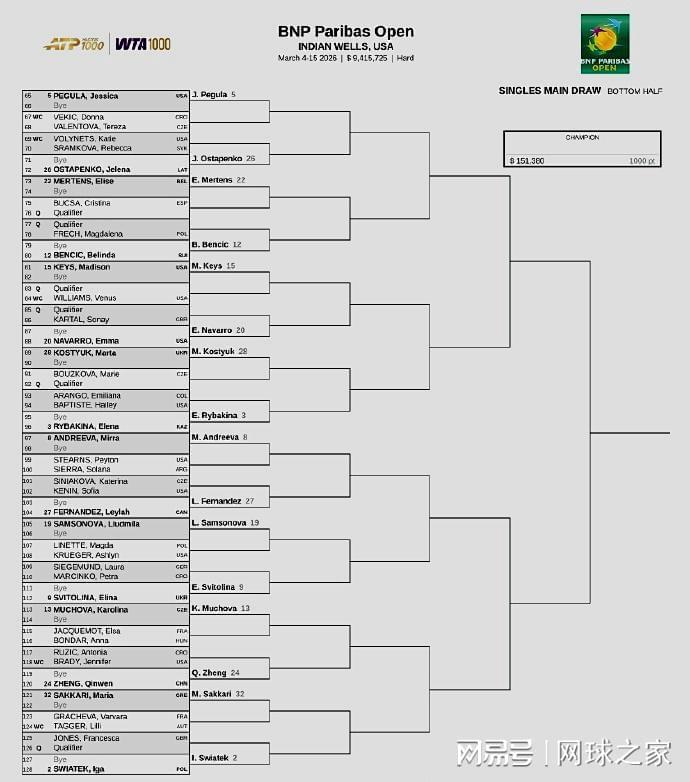 女子方面:前八大种子的对位是,上半区,萨巴伦卡--阿尼西莫娃、高芙--鲍里妮;下半区,佩古拉--莱巴金娜、米拉-安德列娃--斯瓦泰克。中国一姐郑钦文位列24号种子,首轮轮空,第二轮将静候复出的美国人布雷迪和克罗地亚人鲁季奇之间的胜者。如能晋级,第三轮将对阵捷克名将穆霍娃,第四轮等待她的大概率是2号种子、世界第二斯瓦泰克,签表够硬。