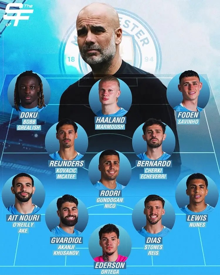 新援鱼贯而入,但格瓦迪奥尔、罗德里和哈兰德组成的高大中轴才是曼城的根本。